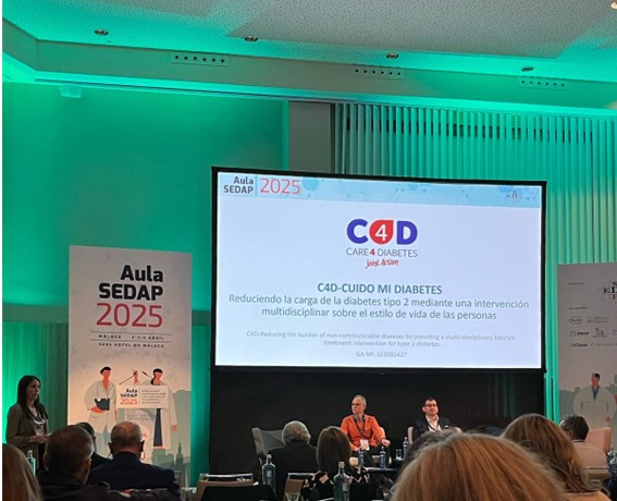 Durante el segundo día de las jornadas, FUNDESALUD ha participado presentando el proyecto europeo Care4Diabetes junto con otros socios del consorcio español que participan en la iniciativa. El objetivo principal del proyecto es mejorar y fomentar la salud de las personas con diabetes tipo 2, reduciendo tanto la carga de la enfermedad como los factores de riesgo asociados, no solo a nivel personal, sino también en el ámbito social. Con ello, se busca facilitar cambios sostenibles en el estilo de vida que promuevan un mayor bienestar y una mejor calidad de vida, minimizando el impacto de la enfermedad en la vida cotidiana y reduciendo la necesidad de tratamientos farmacológicos.