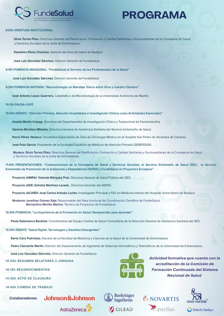 El 26 de junio de 2025 celebramos la II Jornada  sobre Investigación, Innovación y Formación en Salud (IIFSalud 2025), que este año congregará en el Palacio de congresos de Mérida a un sobresaliente panel de ponentes y expertos que forman parte de un atractivo programa. Están invitados a asistir y participar en la Jornada IIFSalud 2025 todos los profesionales sanitarios interesados en asuntos tan importantes como los estudios clínicos, en los proyectos de investigación e innovación en salud, en el potencial de la formación o en las posibilidades que la digitalización aporta a la salud.